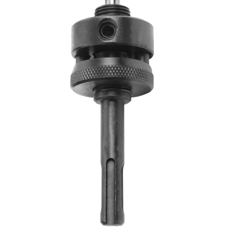 An SDS-PLUS arbor, also called a mandrel, is the adapter that connects a hole saw to an SDS-PLUS rotary hammer drill. Standard drills with a keyed or keyless chuck cannot accept SDS shanks, so if you want to use a hole saw with a rotary hammer, you need an SDS arbor. The SDS connection transmits far more torque than a standard chuck, making it suited to large-diameter cutting in masonry.