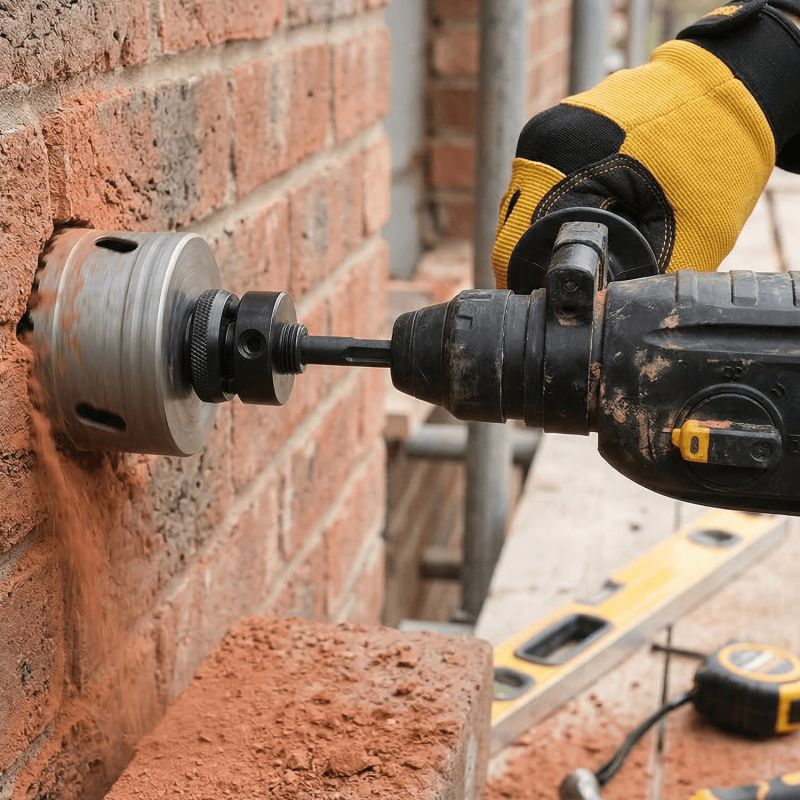 Fit the hole saw: Thread your chosen hole saw (32mm-152mm) onto the arbor body and tighten securely.