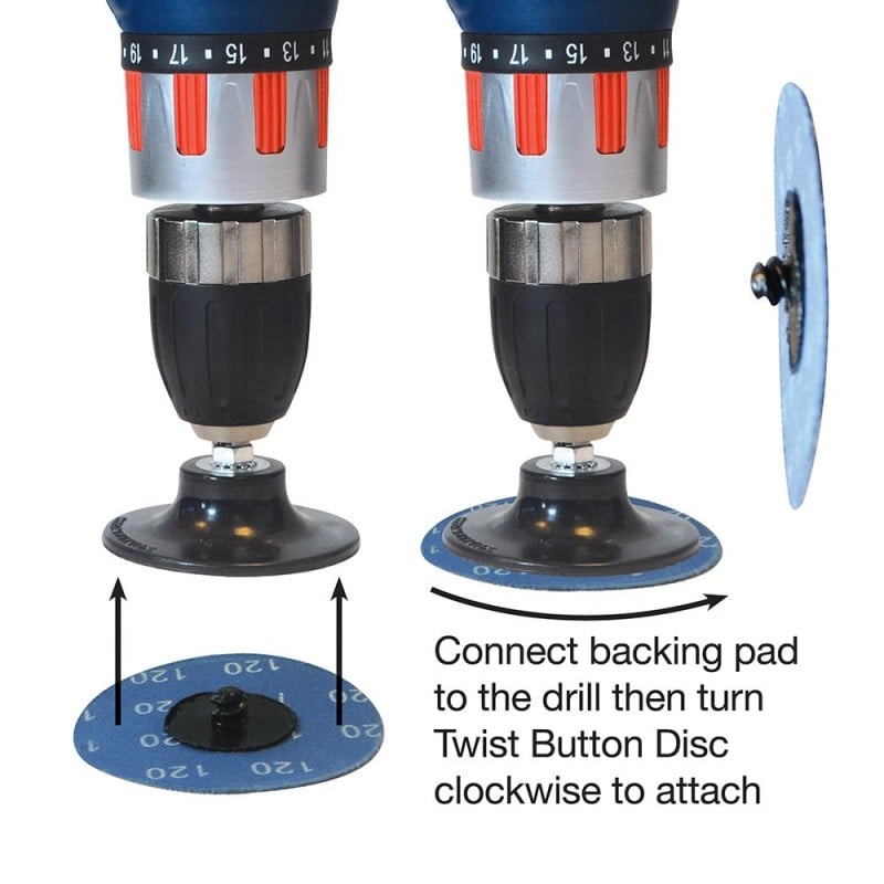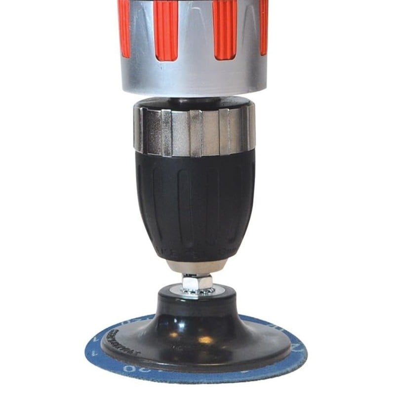 The kit includes a durable rubber backing pad to provide stable contact on the work surface, plus a 6.35mm steel arbor for secure fitting to compatible tools. Suitable for use with drill drivers, air drills and power drills, it’s a handy accessory for workshop, automotive and maintenance jobs where quick disc changes save time.