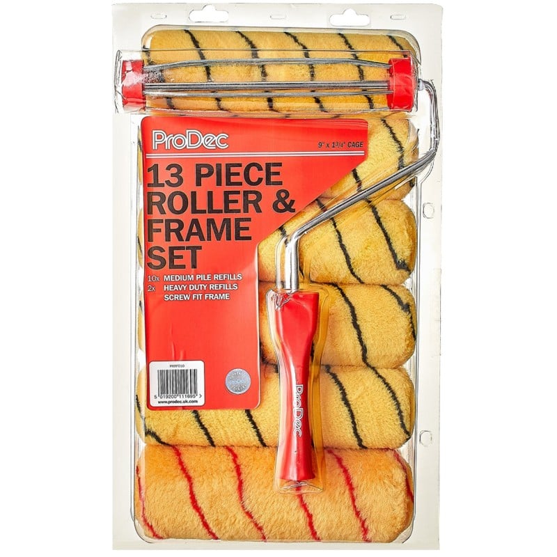 Prodec 9" 230mm Emulsion Tiger Paint Roller Medium and Long Sleeve & Frame 13 Piece Set PRRF010