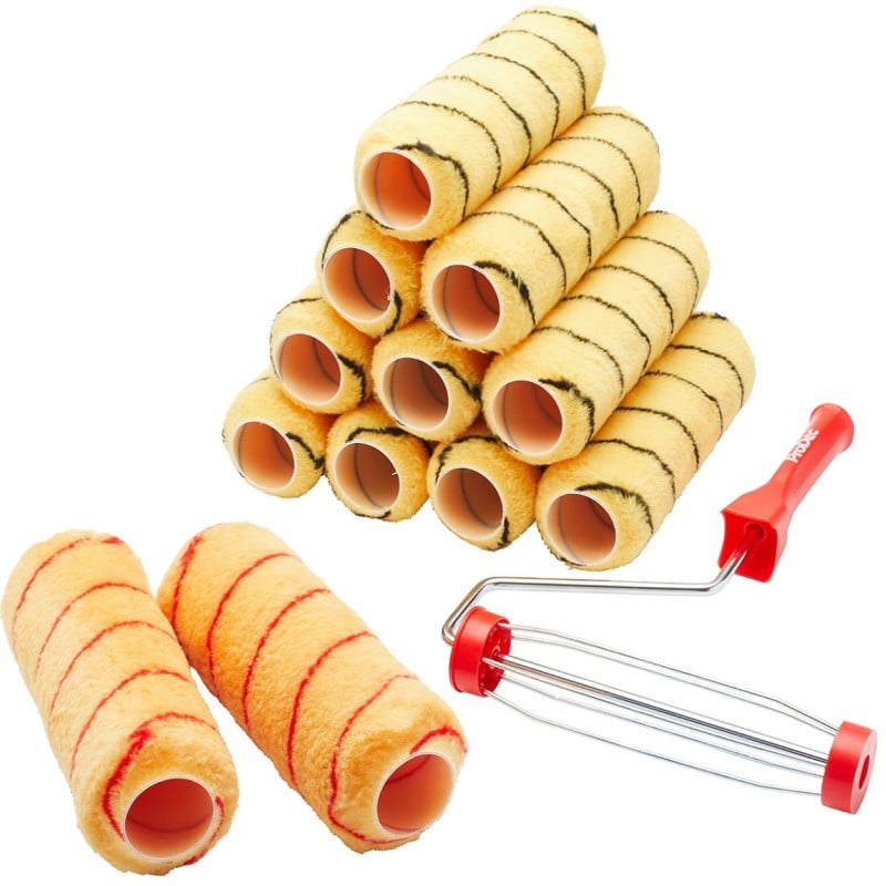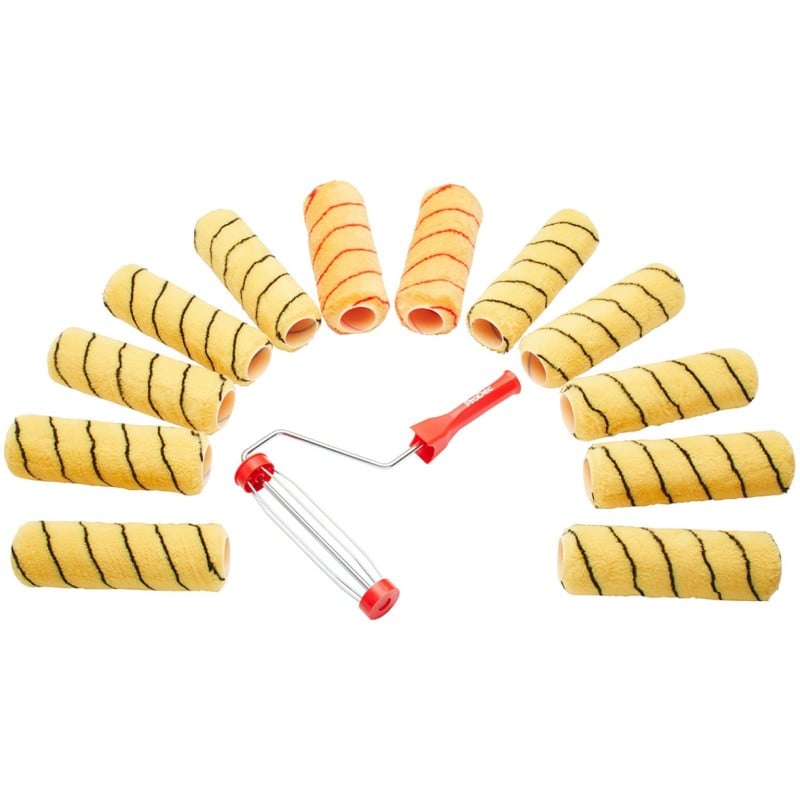 This set contains 10 medium pile roller sleeves, 2 long pile roller sleeves and 1 roller frame, giving you a practical mix for different painting surfaces.