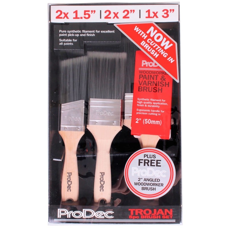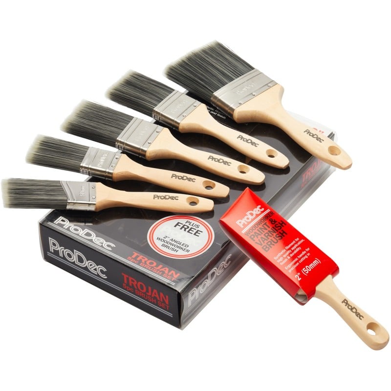 ProDec 6-Piece Trojan Synthetic Decorators Paint and Varnish Brush Set (PBPT079) - Includes cutting in Brush and a Free Woodworker 2 inch brush