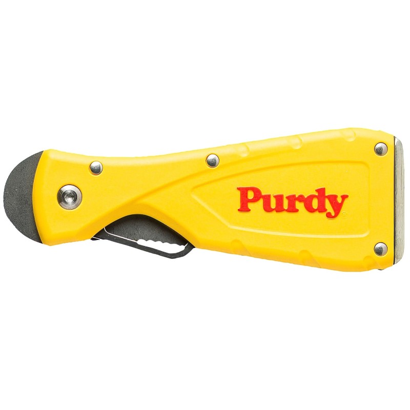 - What is the Purdy 10-in-1 Tool used for? It combines multiple decorating tools, such as a scraper, filler knife and roller cleaner, in one folding design.