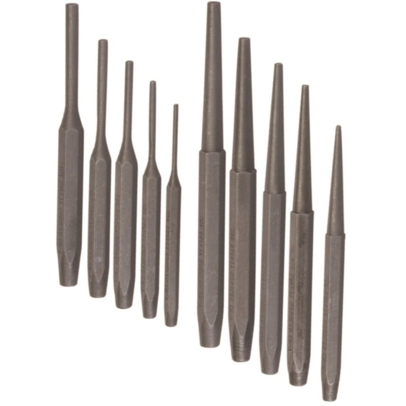 Taper punches are commonly used for aligning holes and starting stubborn pins. Their tapered shape makes them useful during fitting and assembly work.