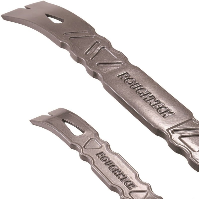 The Roughneck Pro-Grip Utility Bar Set delivers solid strength, dependable leverage, and enhanced control for demolition, prying, lifting, and nail-removal tasks. Manufactured from drop-forged, heat-treated steel, each bar is built to withstand demanding site and home workloads. A durable powder-coated finish protects against rust and wear, ensuring long service life even in tougher environments.