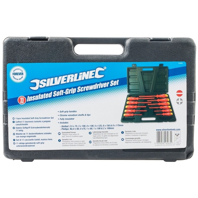 Silverline Insulated Electrical Easy Grip 11 Piece Screwdriver Set - 918535