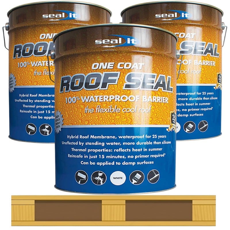 The Seal It Roof Seal Waterproof Liquid Roof Coating Compound (Black – 3 x 20 Litre Pallet Deal) is an award-winning, next-generation liquid roofing system engineered for ultimate waterproof protection and long-term durability. Made with hybrid polymer technology, this advanced formula creates a 100% waterproof, seamless membrane that’s ideal for commercial, industrial, and residential roofing applications.