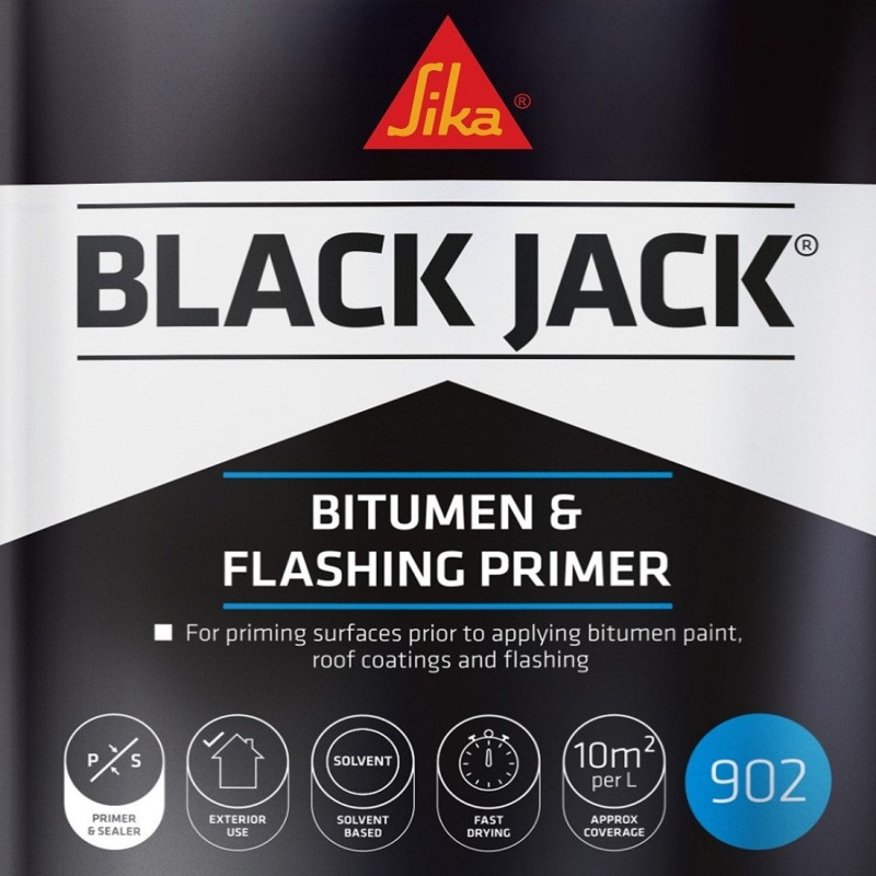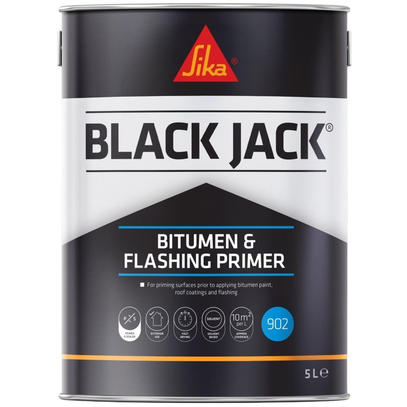 Sika Everbuild 902 Black Jack Bitumen Primer Coat and Flashing Primer in a 5 litre tin a high-quality, fast-drying, solvent-based primer formulated to promote excellent adhesion between bituminous materials and various building surfaces. Ideal for use as a primer coat before applying bitumen paints, coatings, or flashing tapes, it penetrates deeply into porous substrates to create a strong, uniform base for long-lasting waterproofing and weather protection.