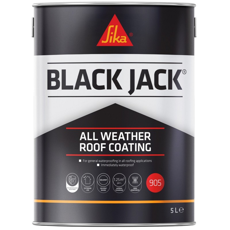 The Sika Everbuild 905 Black Jack All Weather Roof Coating supplied in a 5-litre metal container a high-performance, weatherproof solution for protecting and repairing roofs. This versatile coating is designed to provide a durable, flexible, and waterproof barrier against the harshest weather conditions. Ideal for flat, pitched, or sloping roofs, it can be applied to a variety of surfaces, including concrete, metal, asphalt, and roofing felt.