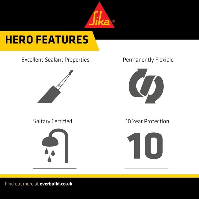 Sika Everbuild Forever White Silicone Sealant is specifically designed for bathroom and wet area applications, offering long-term protection against mould and mildew thanks to its advanced Mould Shield technology. Unlike standard silicone sealants, it incorporates an anti-bacterial formula that prevents discoloration and fungal growth, even in humid conditions. It also provides superior adhesion, water resistance, and durability, making it ideal for use in high-moisture environments such as showers, baths, and sinks.