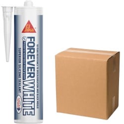The Sika Everbuild Forever White Premium Bathroom Silicone Sealant provides professional-grade protection against mould and mildew in areas of high humidity such as bathrooms and kitchens. Containing advanced Mould Shield antibacterial technology, it actively prevents the growth of mould, mildew, and bacteria for up to 10 years, ensuring long-lasting, hygienic seals. Permanently waterproof and flexible, Forever White delivers a smooth, durable finish suitable for showers, baths, sinks, and sanitary fittings, supplied in a 290ml filled cartridge suitable for use in a standard sealant gun.