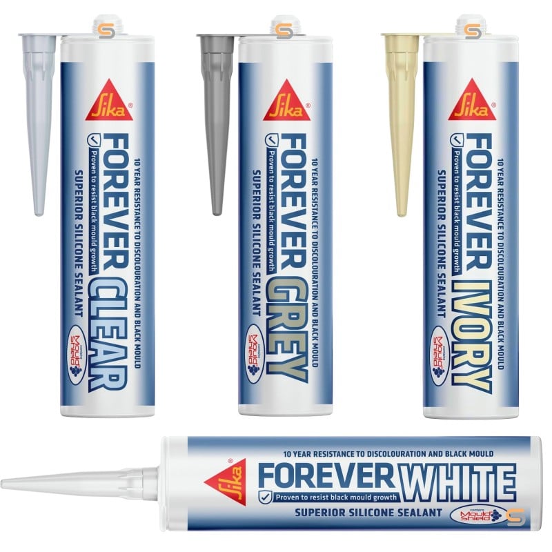SIKA FOREVER SILICONE SEALANT CONTAINS - MOULD SHIELD - ACTIVELY PREVENTS THE GROWTH OF BACTERIA MILDEW AND BLACK MOULD.