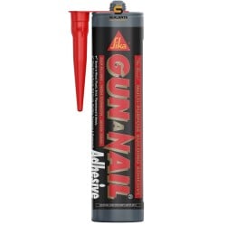 The Sika Everbuild Gun A Nail Solvent-Free Grab Adhesive is a high-strength, multi-purpose adhesive designed for secure bonding across a variety of materials. Supplied in a Trade Box of 25 (300ml cartridges), this product is perfect for professionals and tradespeople seeking a reliable and cost-effective solution for large-scale projects. Its solvent-free formula ensures safer, low-odour application, making it ideal for use in indoor environments. solvent free is a ready to use gap filling and panel adhesive based on a toughened acrylic polymer blend, Gun A Nail Standard can be used where at least one of the substrates to be bonded is porous, adheres to most common surfaces inside the home.