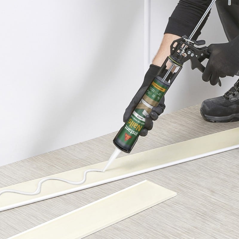 The instant grab feature eliminates the need for temporary fixings or clamps in most applications, allowing for faster installation and reducing project time. This makes it especially useful for large-scale tasks where efficiency is key, such as installing multiple skirting boards or panels in a single session.