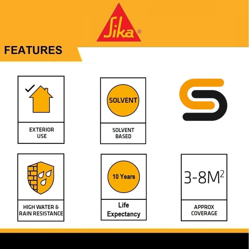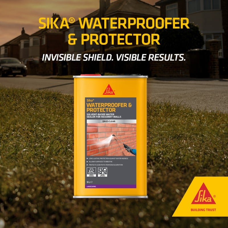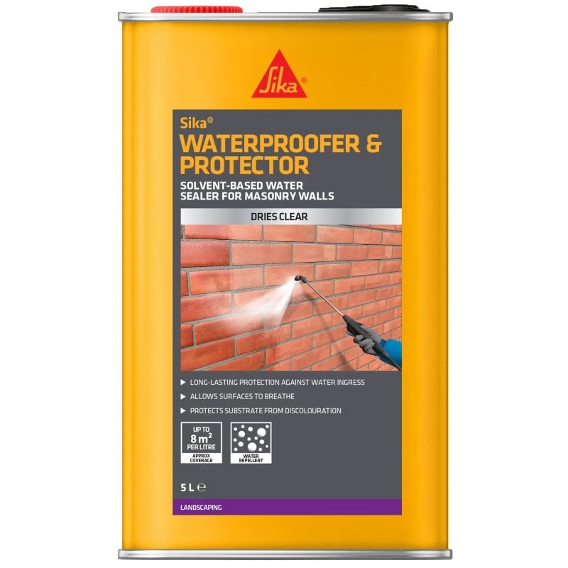 Sika Water Seal Solvent-Based Waterproofer and Protector is a high-performance clear masonry sealer designed to defend porous outdoor surfaces against rain penetration, dampness, frost damage, and weathering. Formulated with an advanced solvent-based system, it penetrates deeply into brick, stone, concrete, render, and paving, lining the surface pores with a long-lasting hydrophobic barrier.