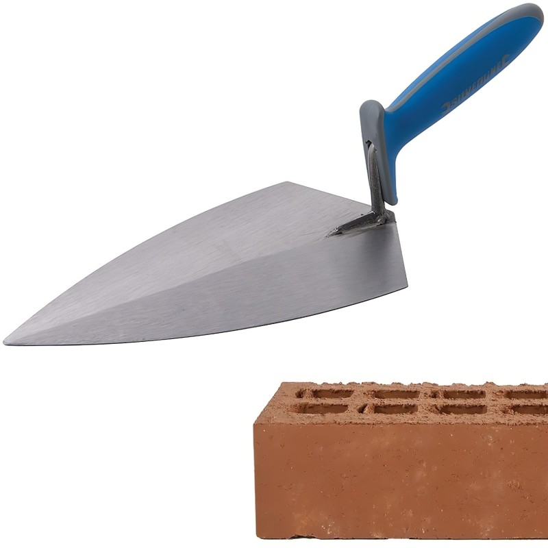 The Silverline 280mm Soft Grip Bricklayers Full Size Brick Trowel is a solid forged, full-length trowel designed for everyday bricklaying and blockwork. The blade is precisely ground with a heel-to-toe taper, giving just the right amount of flexibility for smooth mortar application while maintaining excellent strength.