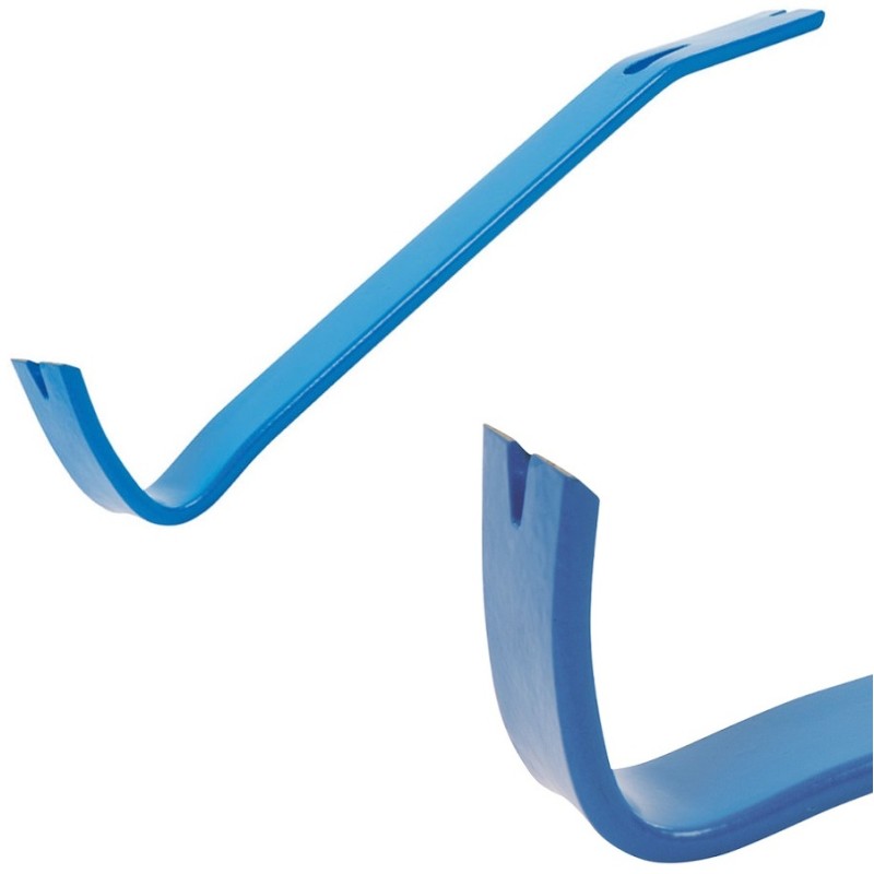 Both ends feature ground, bevelled chisel edges, ideal for opening crates, lifting floorboards, removing architraves, and raising doors or windows into position during fitting. The integrated nail puller claw provides quick nail extraction in awkward spaces. Its broad profile spreads the load evenly, helping to reduce damage when working near delicate surfaces such as door frames, skirting, and decorative trim.
