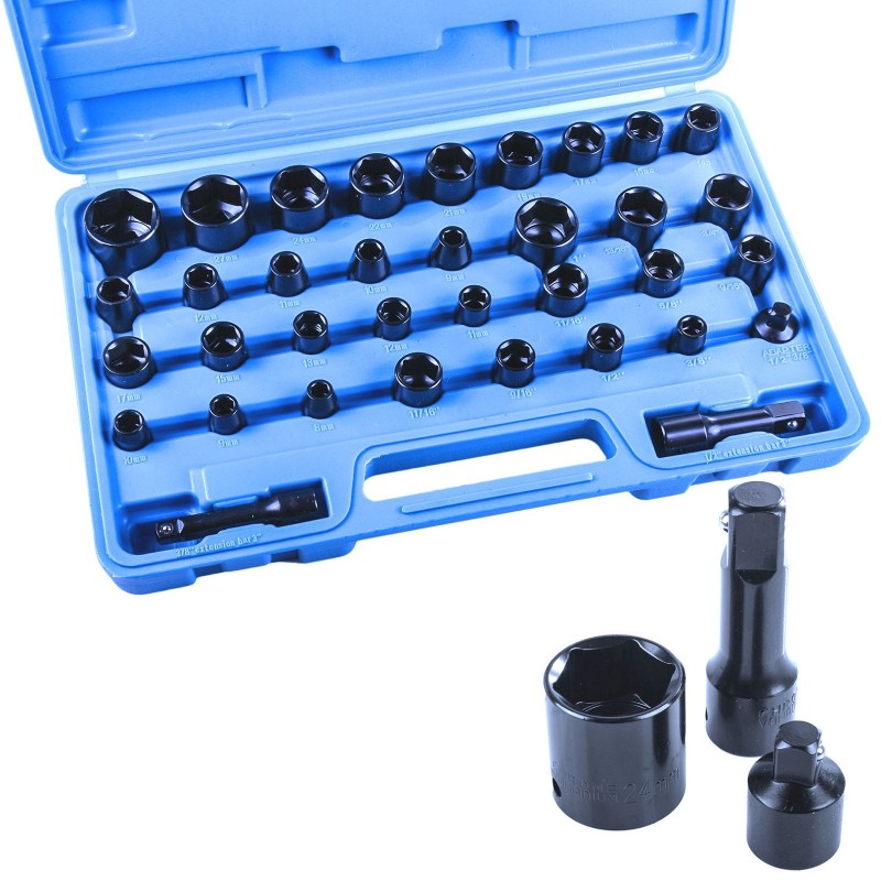 Ideal for use with impact guns and high torque air tools. The set comes complete in robust blown plastic carrying case with size specified slots for quick identification and easy storage case can also be laid and identified easily in the toolbox or taken to the job.