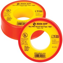 The Silverline PTFE Thread Sealing Tape (Product Code: 250475) is an essential plumbing accessory for creating watertight seals on threaded pipe joints. Supplied in a convenient 10-pack, each roll measures 12mm wide and 12 metres long, making it ideal for multiple applications in both domestic and professional plumbing tasks. This non-adhesive, tear-resistant tape ensures a reliable, leak-free connection every time.