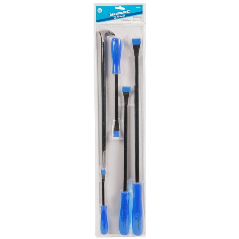 Silverline pry bar locating and roll bar 5 piece mixed set features strong plastic handles, drop-forged, fully hardened and heat-treated to with stand rigorous use.