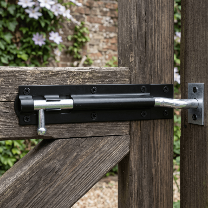 Necked tower bolts suit garden gates, shed doors, double doors, and any door or gate where the door sits in a recessed frame. They are a common choice for wooden outdoor installations.