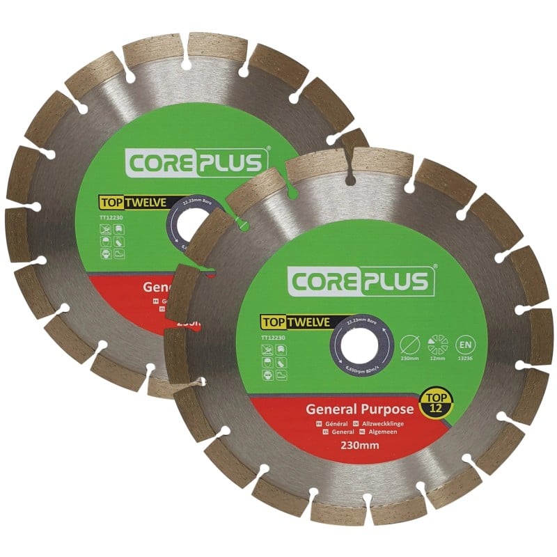 CorePlus CORTT122302 230mm Diamond Masonry Cutting Grinder Blade Twin Pack XMS25DB230