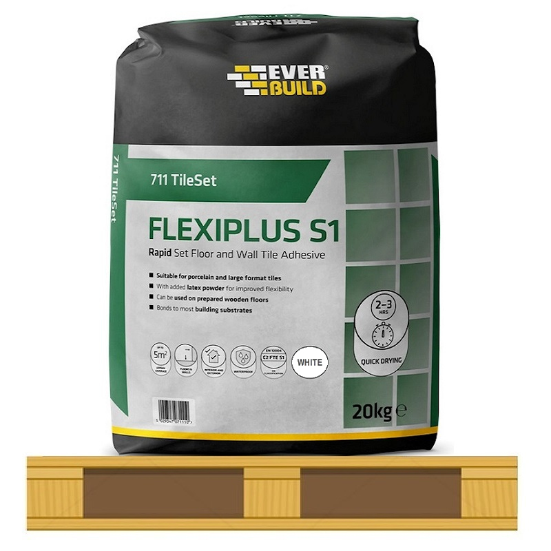 Everbuild 711 Rapid Set FlexiPlus WHITE Tile Mortar Adhesive 50 Bag Pallet Deal