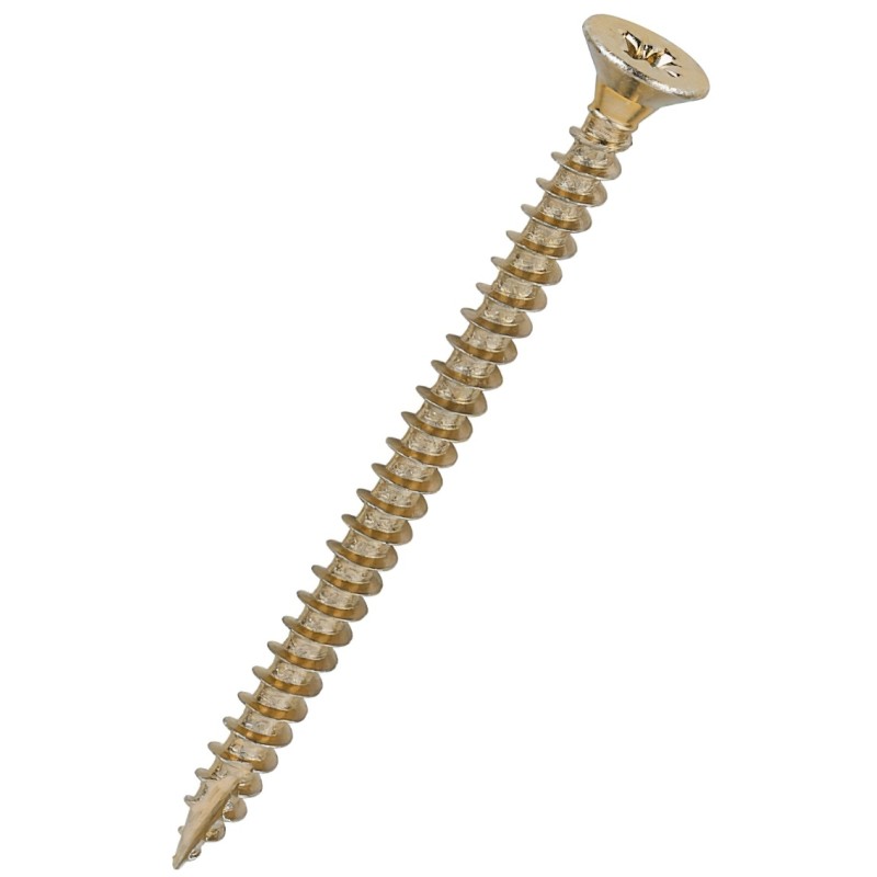 Manufactured from carbon steel with a yellow passivated finish, these screws are designed for smoother driving and reliable grip across a range of common materials. The sharp 25° point helps the screw bite quickly, while the deep single thread improves pull-out resistance and holding strength. A double countersunk head supports a neat flush finish and helps reduce the risk of head shear during installation. This 70mm version is fully threaded, making it suitable for hardwood, softwood, chipboard, MDF, plastic and light-duty thin sheet metal fixing.