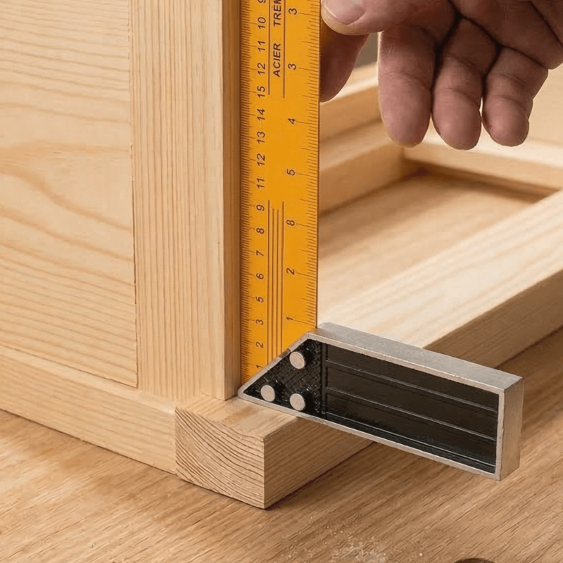 Check a Corner Joint: Place both arms of the square flush against the surfaces of a joined corner to verify squareness.