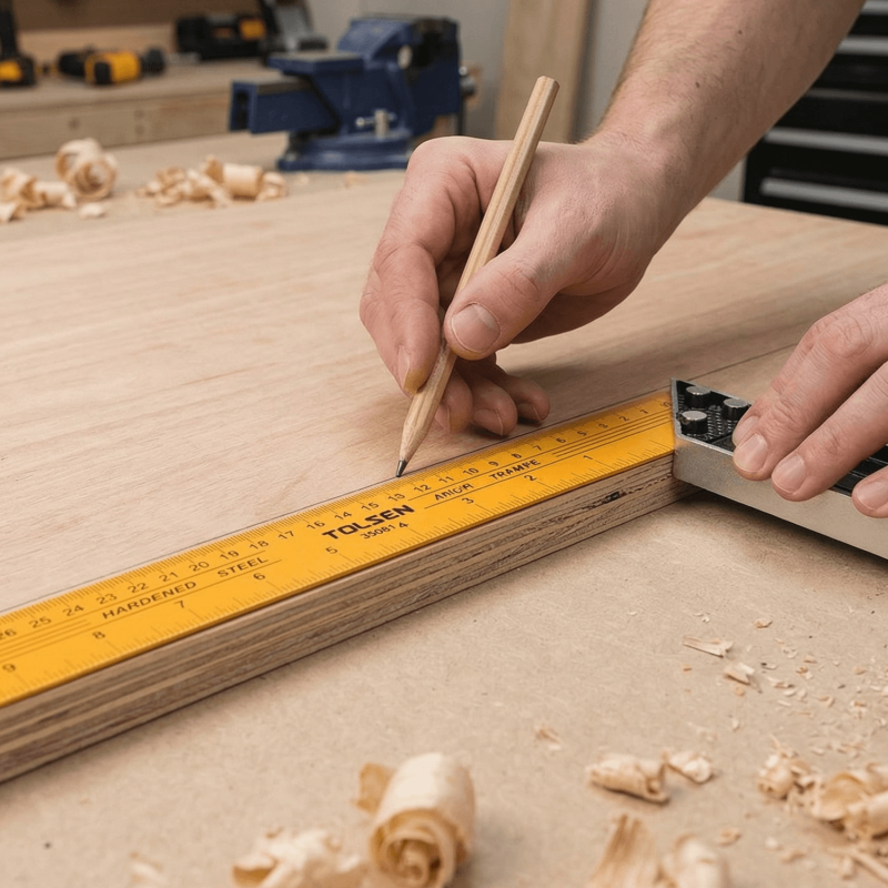Draw Your Line: Hold the handle firmly with one hand and draw along the blade edge with a pencil or marking knife.