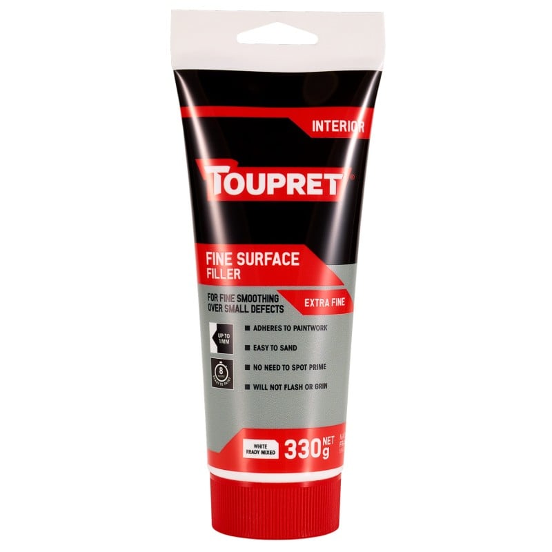The Toupret Extra Fine Surface Filler 330g Squeeze Tube is an effective choice for a smooth interior finish. It offers a simple way to fix minor blemishes on walls without mixing powders. This filler is a helpful addition for final surface preparation.