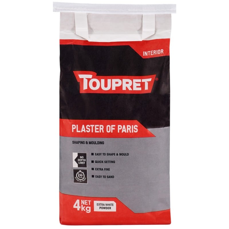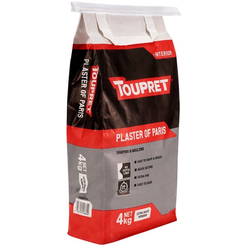 Toupret Plaster of Paris is a fine, extra-white powder designed for interior decorative shaping, moulding, and finishing work. It sets quickly and mixes smoothly, making it well-suited for detailed or intricate applications where a clean result matters.