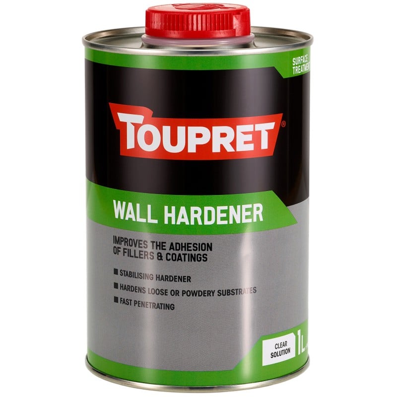 Toupret Wall Hardener Decorating Masonry Surface Stabiliser is a penetrating, stabilising hardener that binds and hardens loose or powdery substrates. It improves the adhesion of fillers and coatings on both interior and exterior surfaces. Ready to use straight from the tin, it requires no mixing and applies by brush or roller for a fast, simple process.