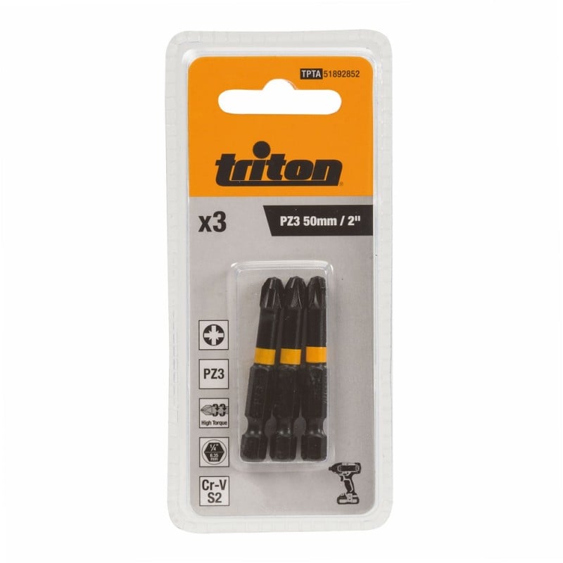 Triton PZ3 Impact Driver Pozi Screwdriver 50mm Bits Pack of 3