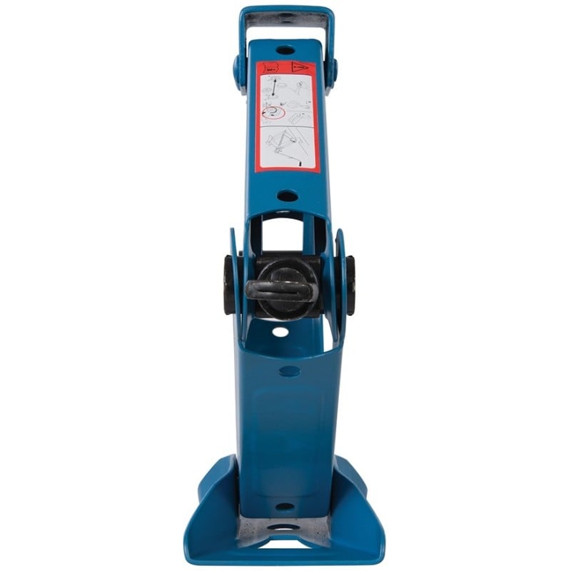 The jack features a folding quick-fit handle with a rubberised soft grip, making cranking smoother and more comfortable. A powder-coated body and zinc-plated components help protect against corrosion, ensuring long service life when stored in the boot or garage.
